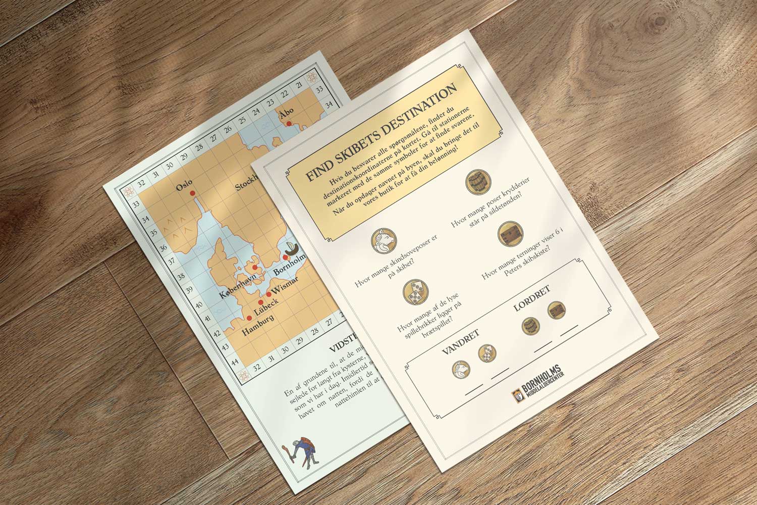 The elements in the experience room work together, aligning in the story universe – StoryVerse. The audio stories reflect various aspects of the pirate life, as do the objects in the room. The “ship” theme zooms into everyday life, while the audio stories, the projected map and the game zoom out to a wider view of history, putting Bornholm in the context of the Hanseatic wars, battles for the Danish crown, and more.