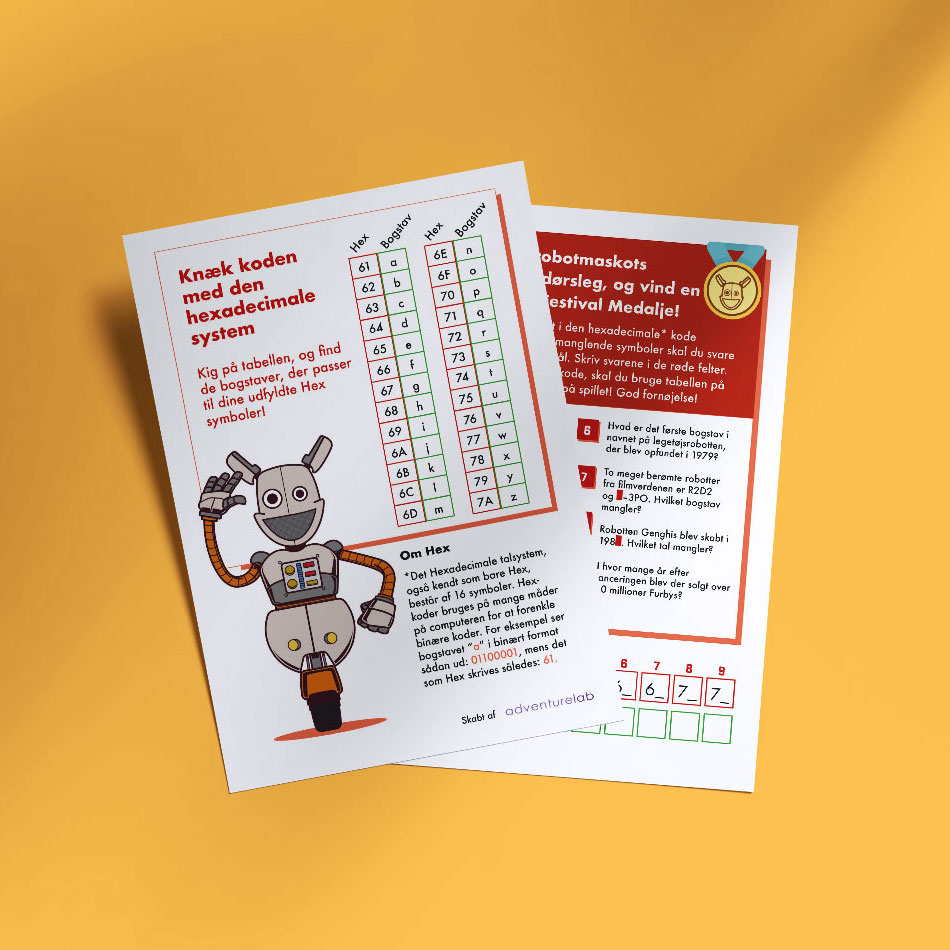 AdventureLAB’s role was to elevate visitor experience with storytelling and experience design. In close collaboration with Robotworkshop and Aarhus University, we created a large-scale timeline, taking visitors through the history of robots. To add another layer of experience, we designed a quiz-based game, which could be played by children aged 12-14 or smaller children with parents. We also designed the event mascot character and elements such as banners, logos and other graphics for printed and digital assets.