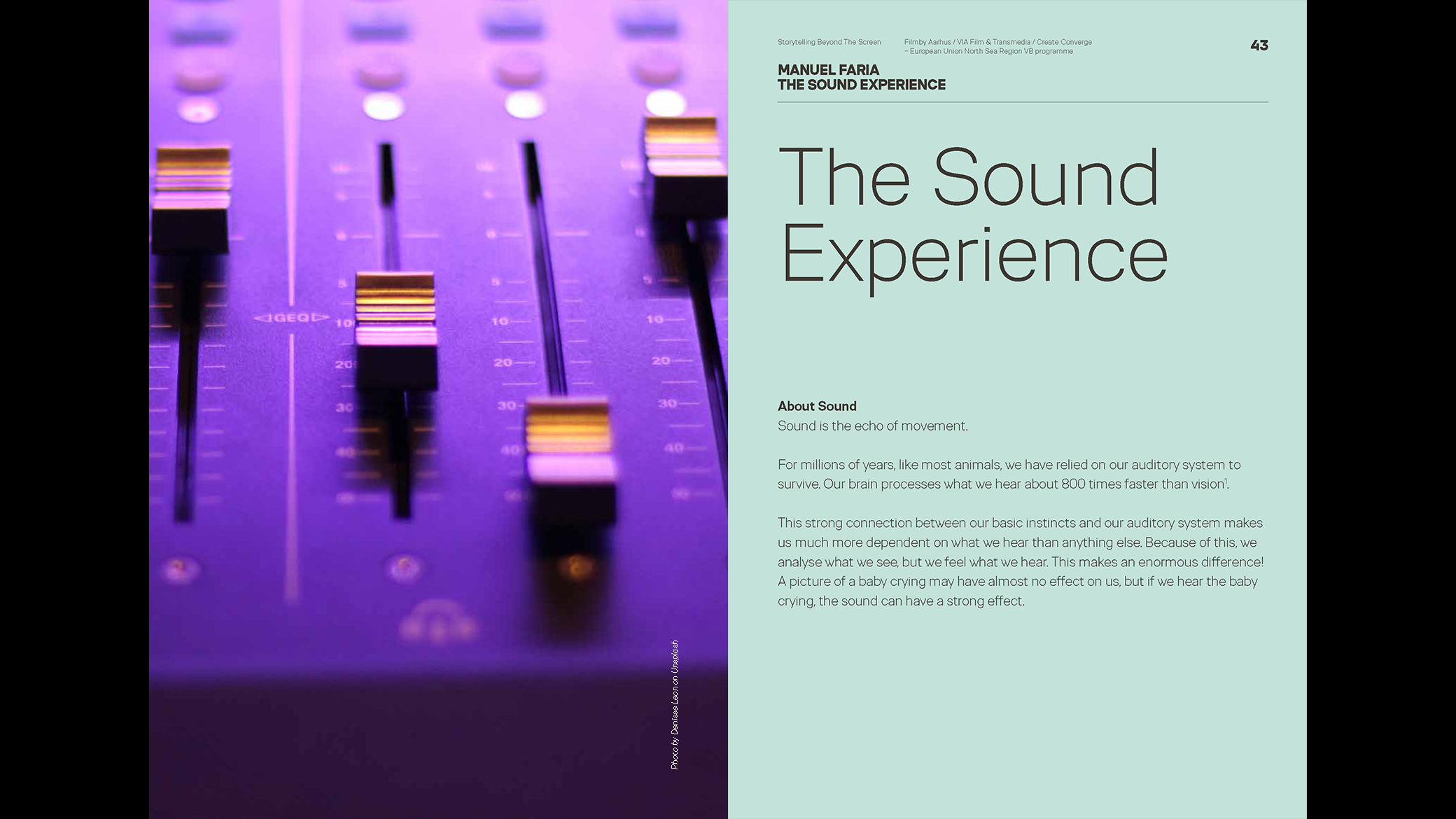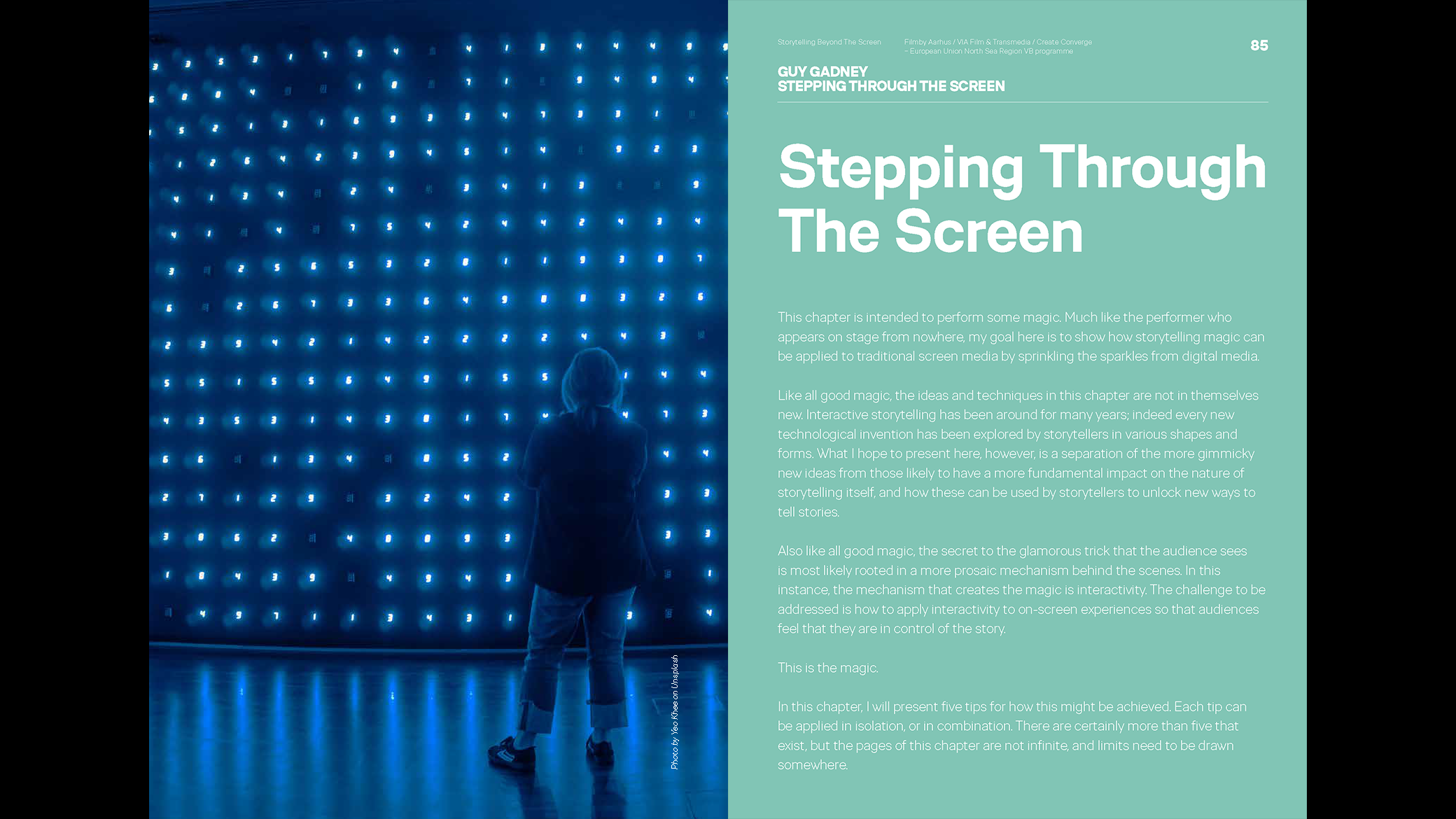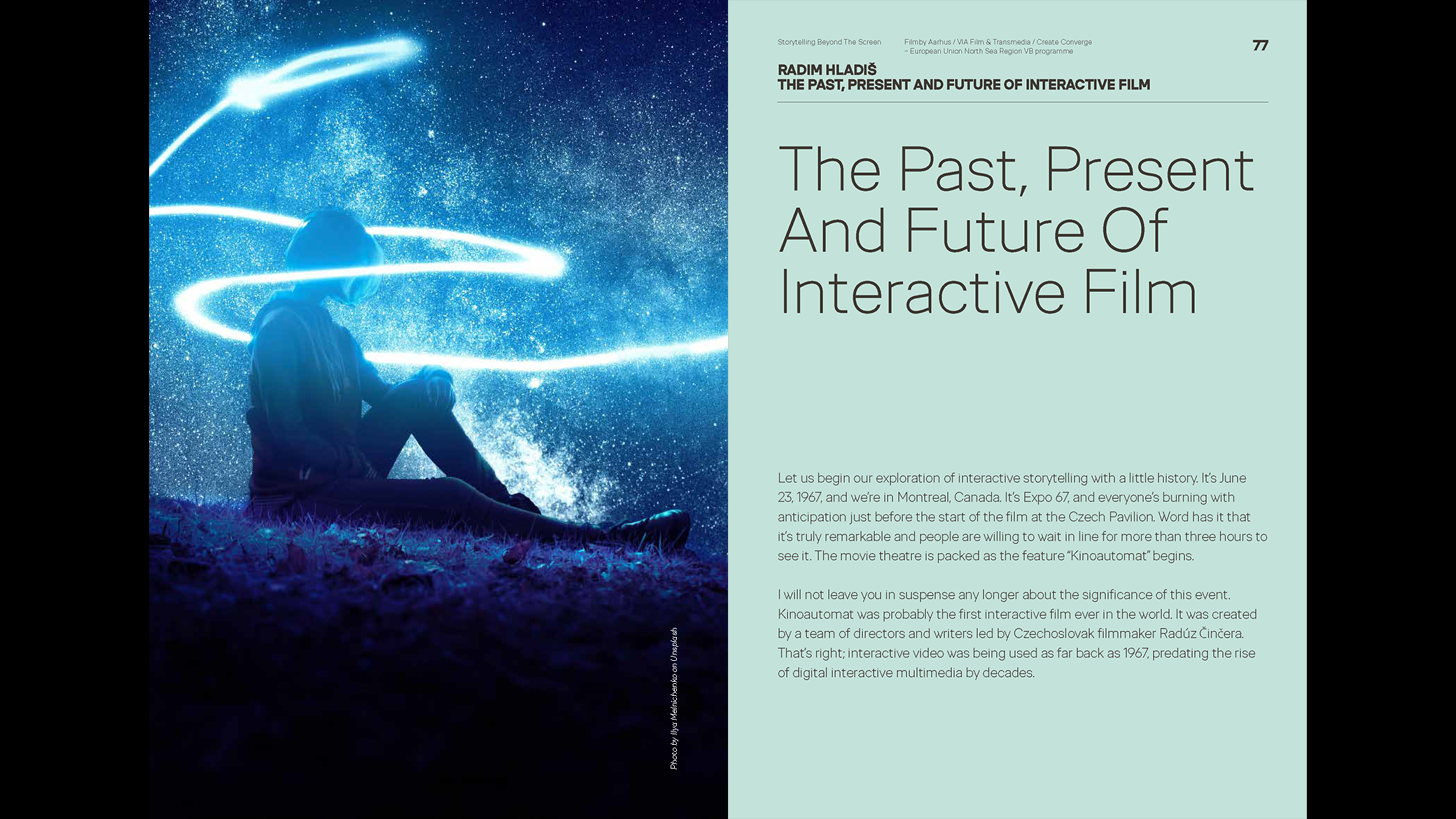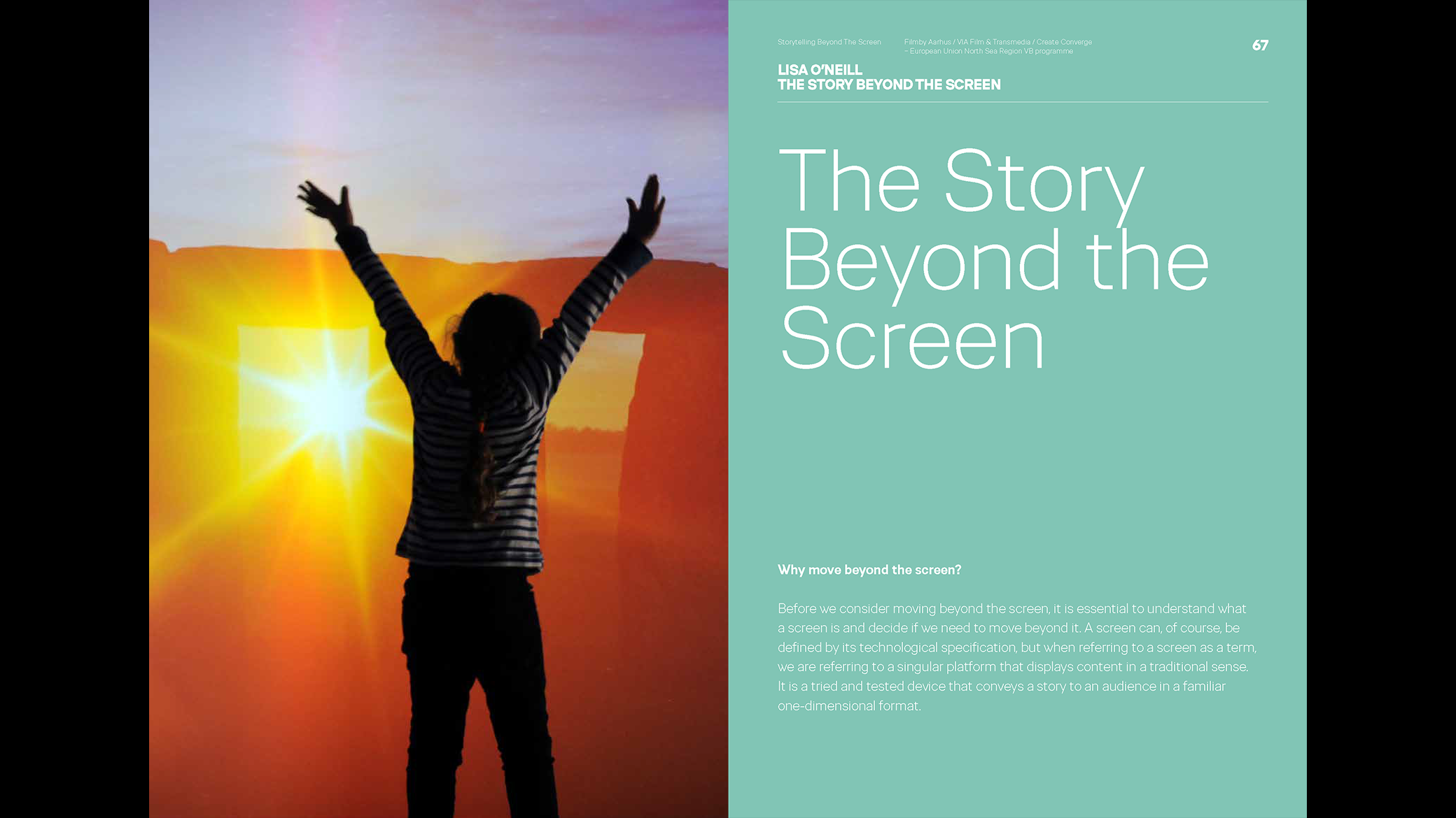 The anthology Storytelling Beyond The Screen is part of Create Converge – a European Union North Sea Region VB programme. It is a collaborative project of VIA Film & Transmedia and Filmby Aarhus.